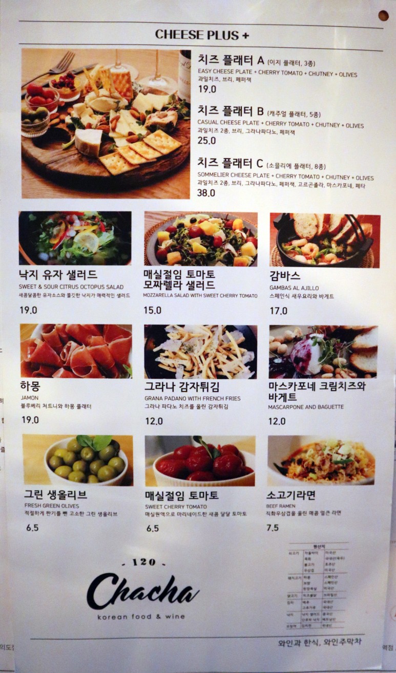 와인주막차차 강남점 메뉴판