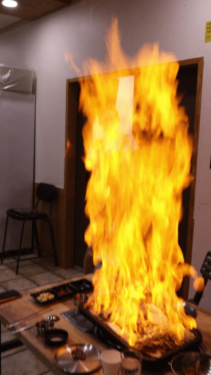 불쇼 대박이죠!!! 뚜벅이 부부 식당에서 이렇게 큰 불쇼 처음 봤어요..!!!! 보통은 그냥 불판 위에서 불이 화르륵 하고 마는데 나주육곱식당은 불이 활활활해요!!!🤣🤣🤣 저 흥분한 거 느껴지시죠?!?!ㅋㅋㅋ