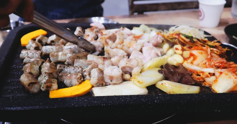 선릉역 곱창 맛집 나주육곱식당은 김치, 파채, 콩나물, 마늘, 양파, 단호박, 버섯, 감자와 함께 곱창, 막창, 대창, 염통을 맛있게 구워주십니다😍😍 남이 해주는 요리가 제일 맛있죠👍👍 그리고 이렇게 다양한 재료를 같이 구워주는 곳 처음 봤어요..
